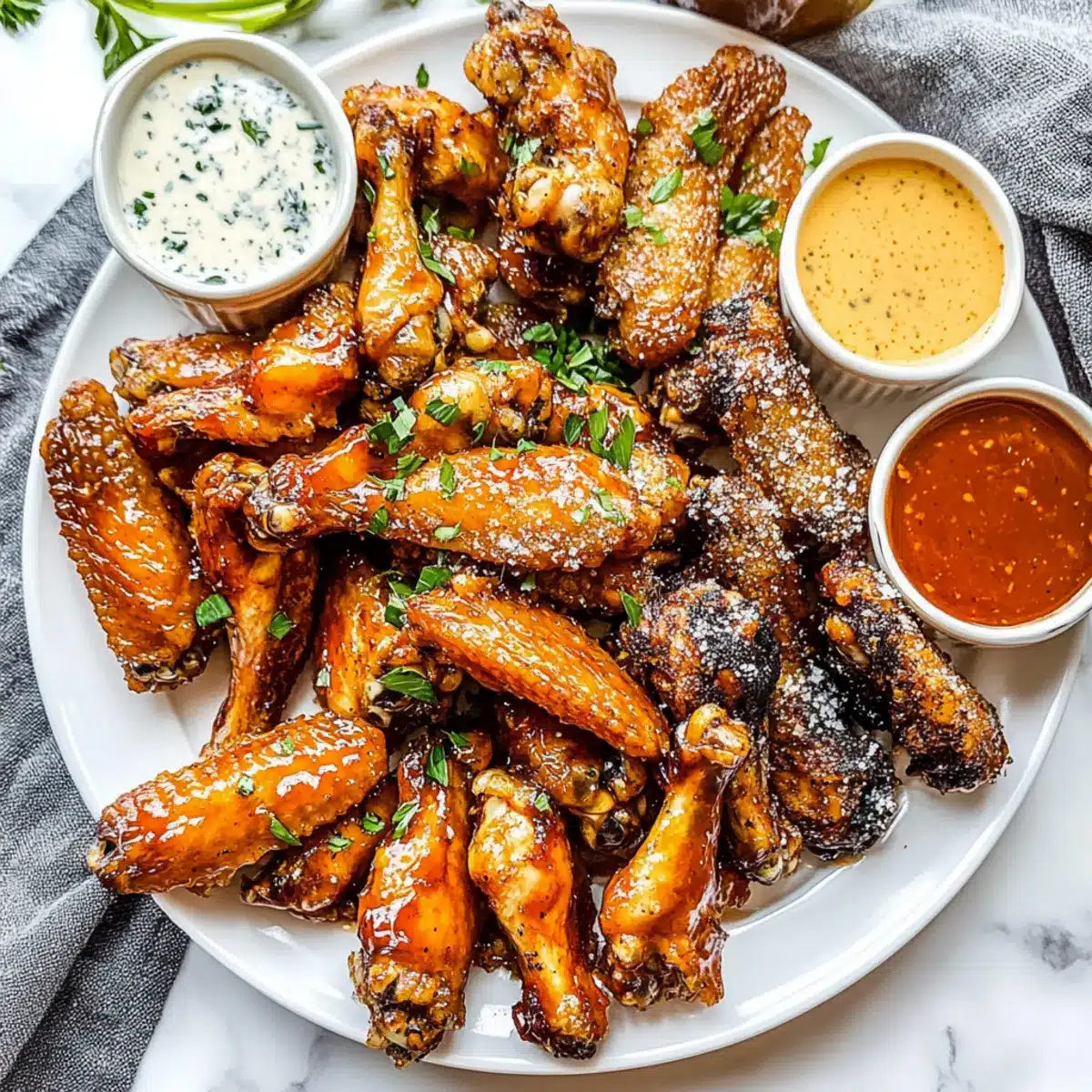 Teriyaki: Swap the sauce for a sweet and savory teriyaki glaze. Simply marinate your cooked wings in teriyaki sauce before serving for an Asian-inspired flair.