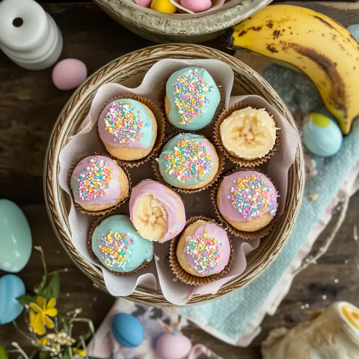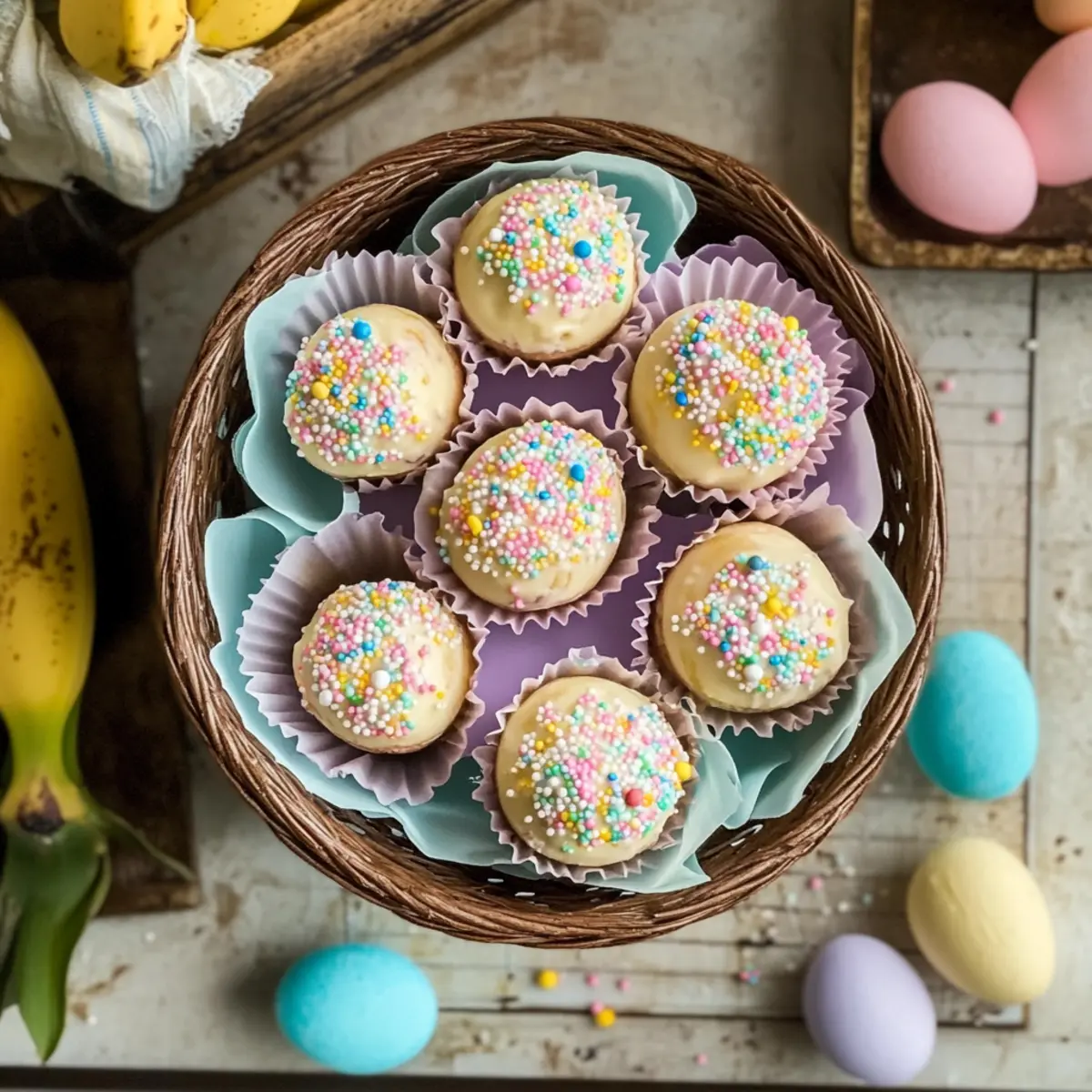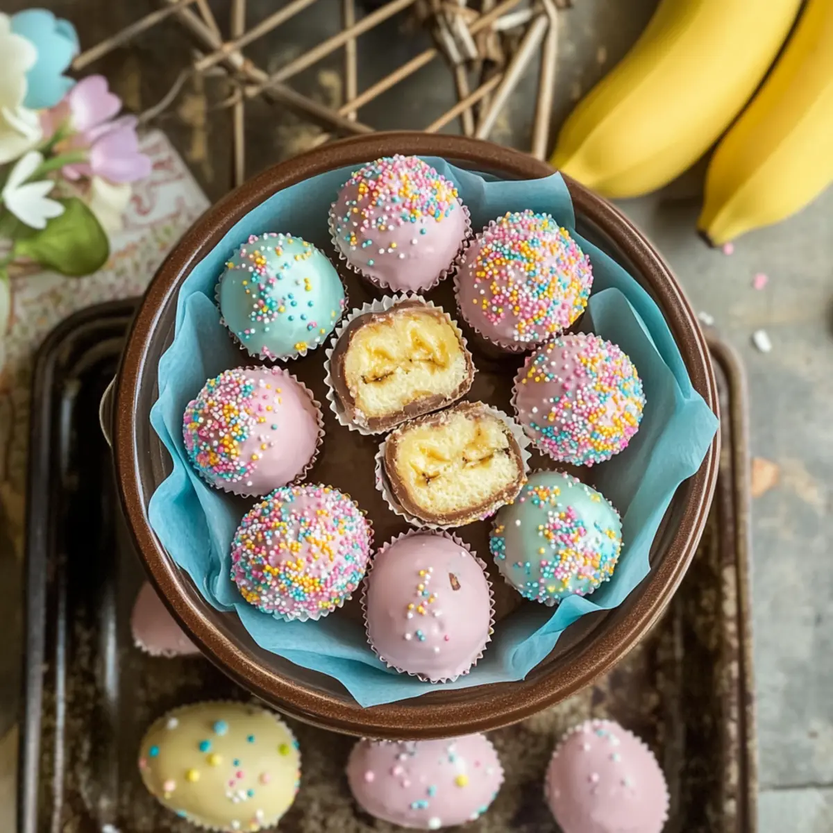 Creative Decorations: Don’t be shy with decorations! Use different sprinkles or edible glitter to make your Banana Pudding Easter Truffles visually pop.