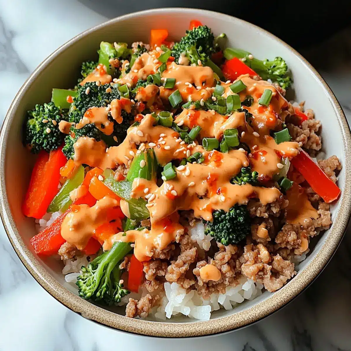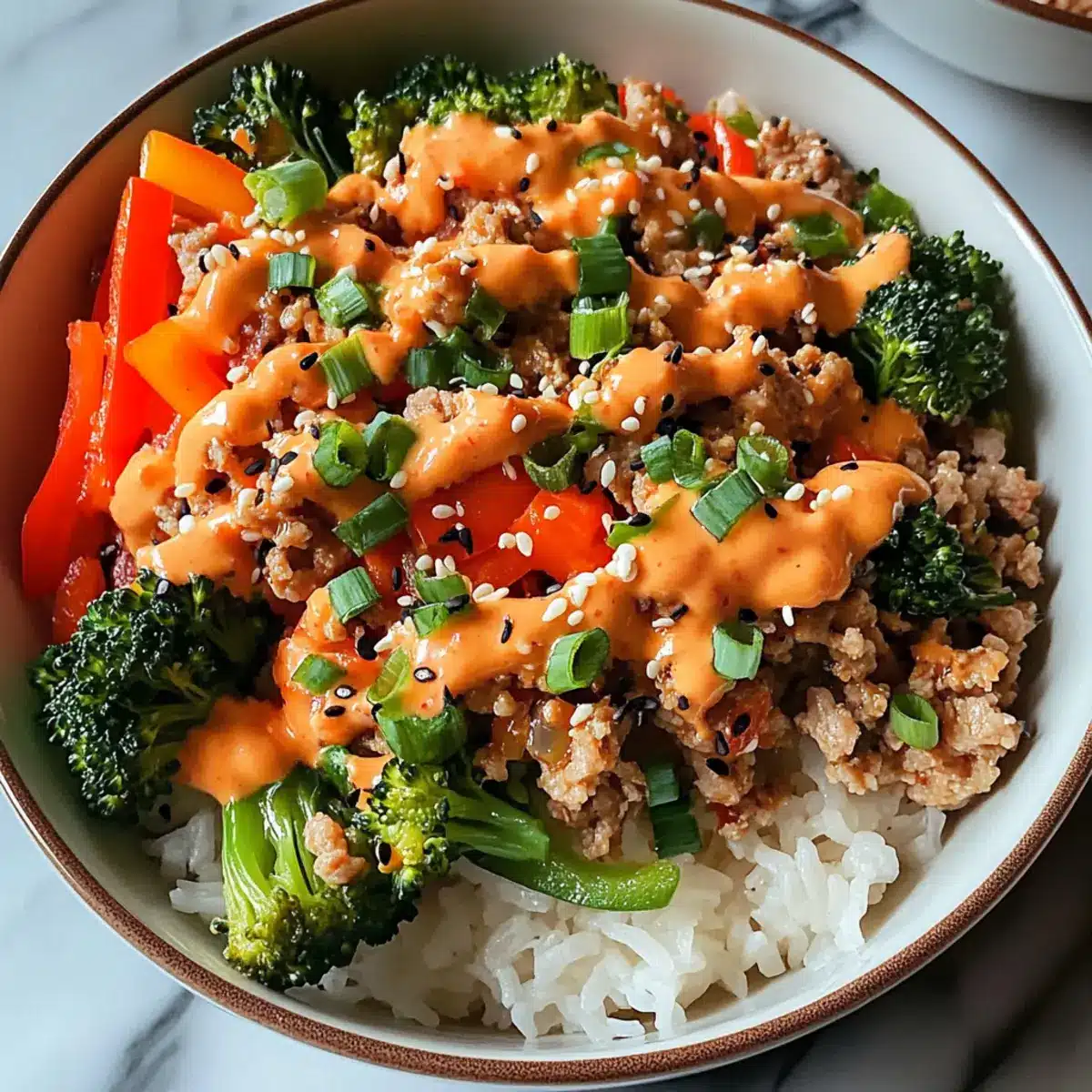 Dive into this vibrant dish full of flavor and healthy ingredients; your taste buds will thank you for these scrumptious Bang Bang Ground Turkey Rice Bowls!