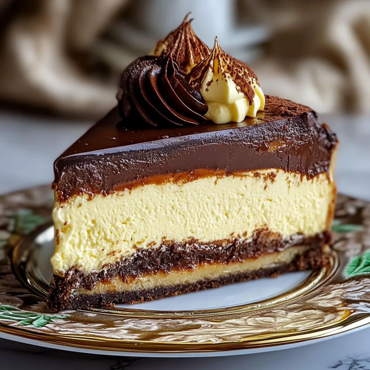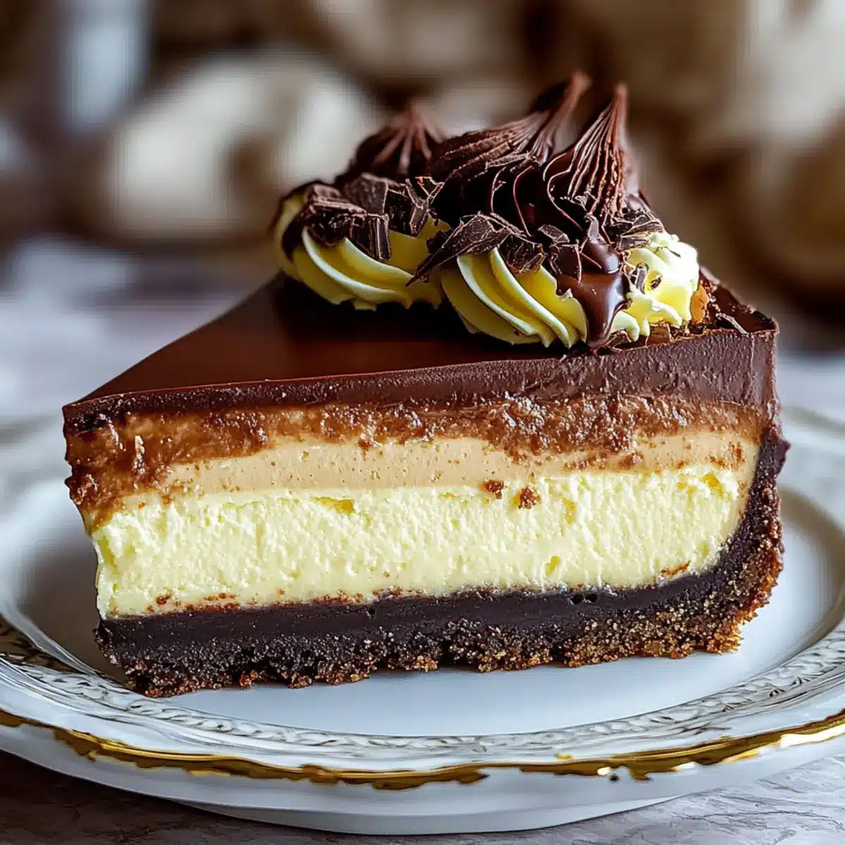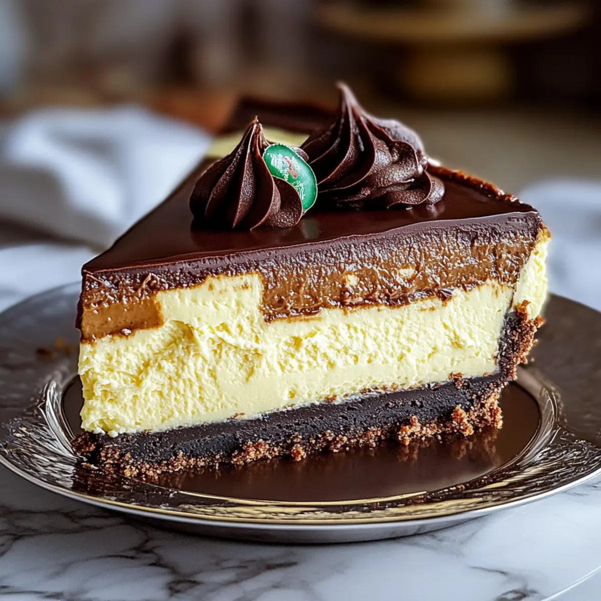 Decadent Layers: The Best Boston Cream Pie Cheesecake features a stunning combination of creamy cheesecake, velvety pastry cream, and glossy ganache, making each bite a dream come true.