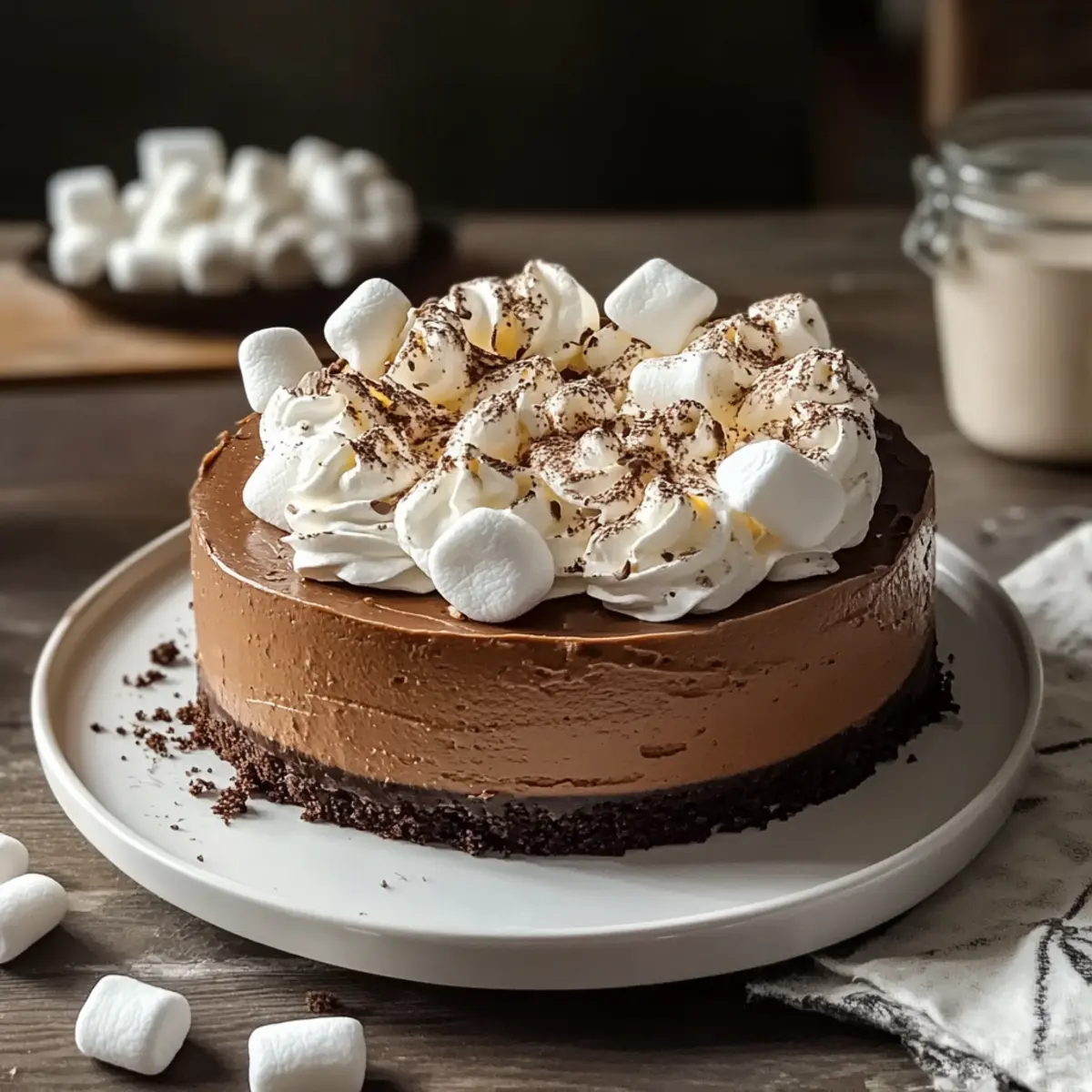 Irresistible Hot Cocoa Cheesecake with Fluffy Topping