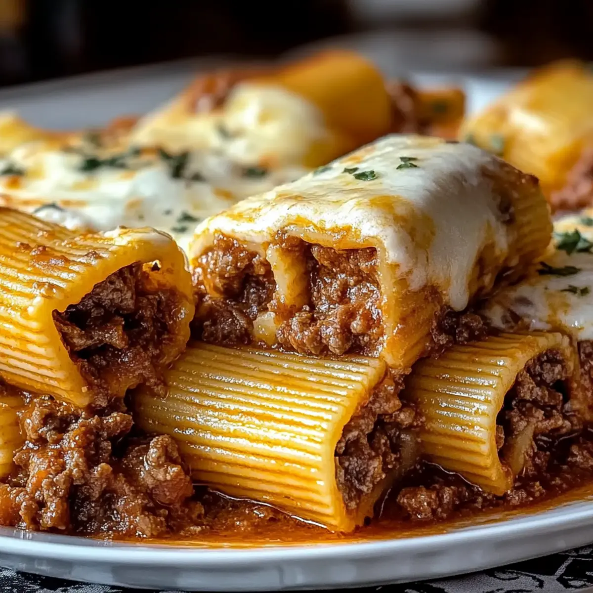 Baked Rigatoni Stuffed with Beef Ragu & Mozzarella Bliss