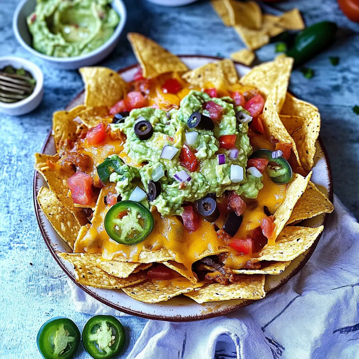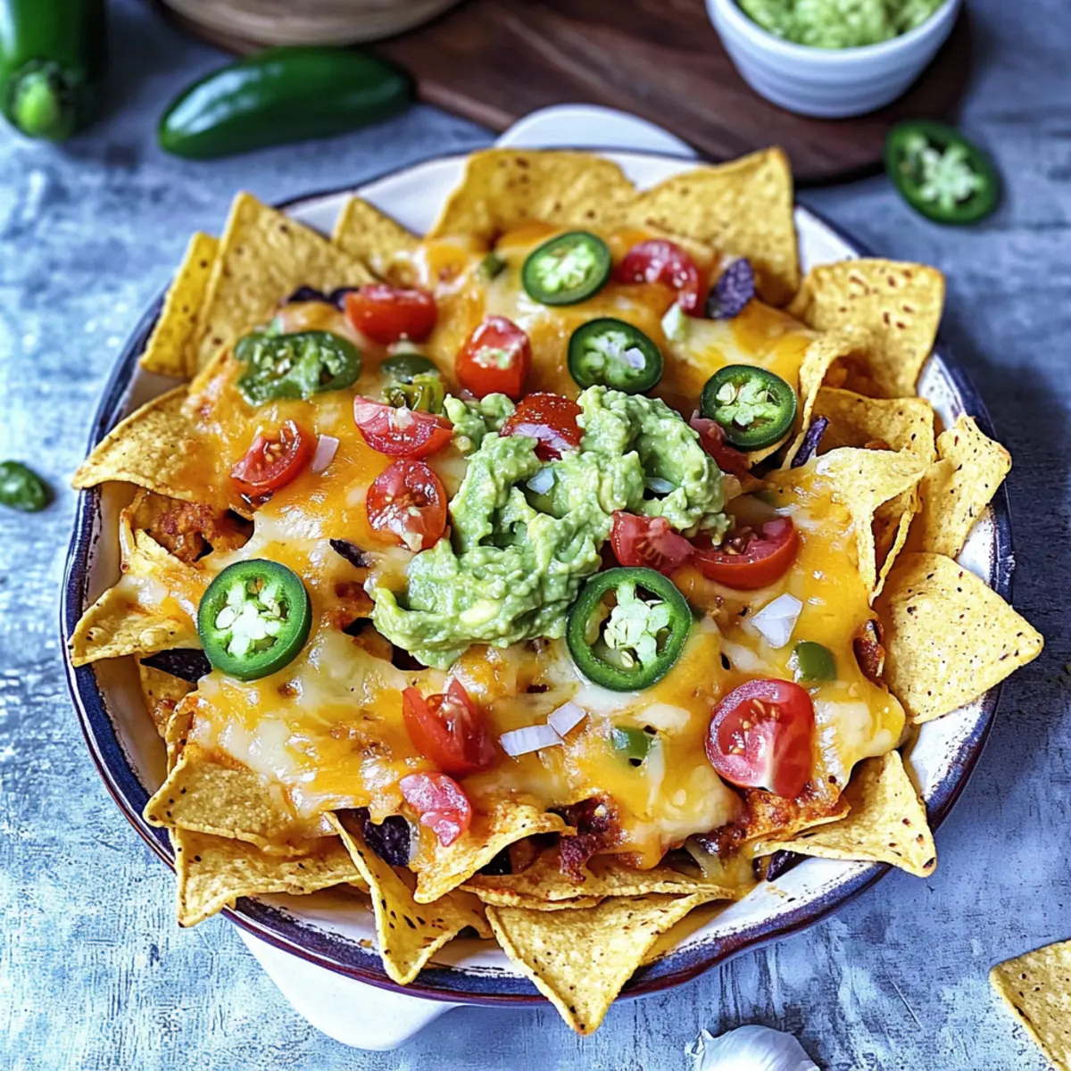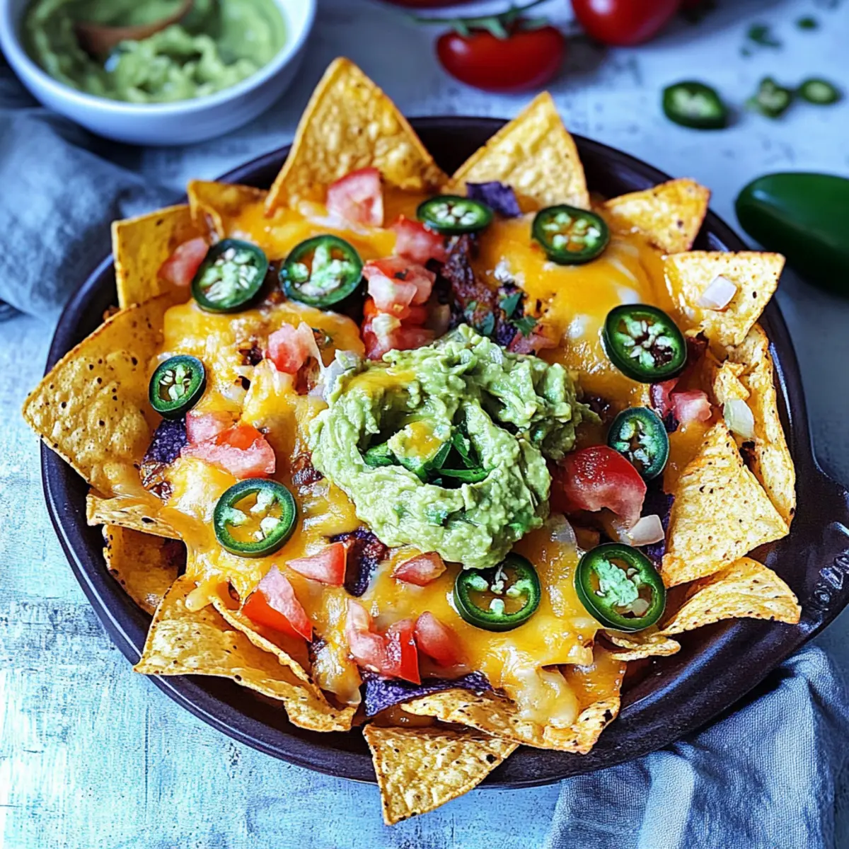 Creamy Guacamole: A must-have! This homemade gem adds richness while balancing the flavors of the nachos.
