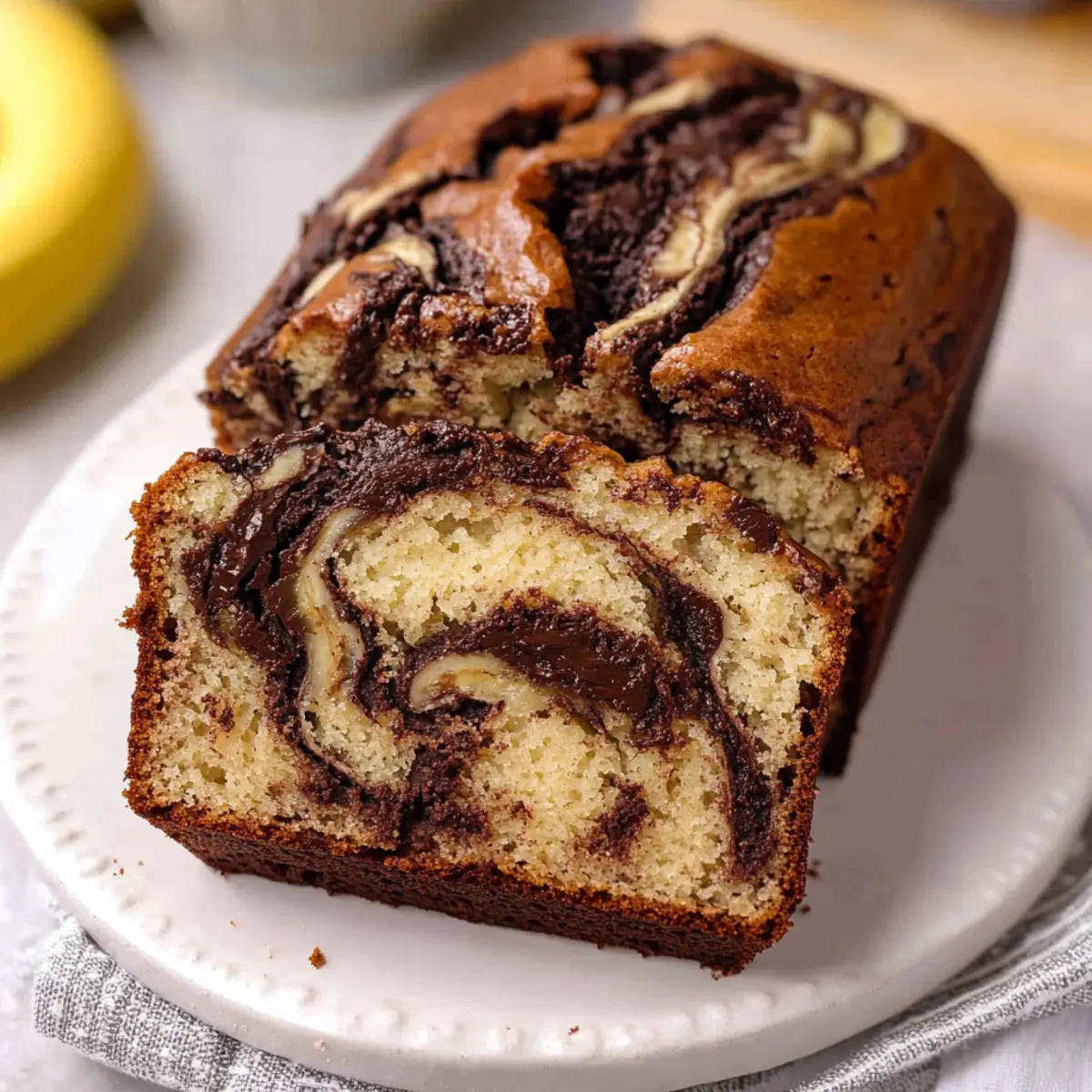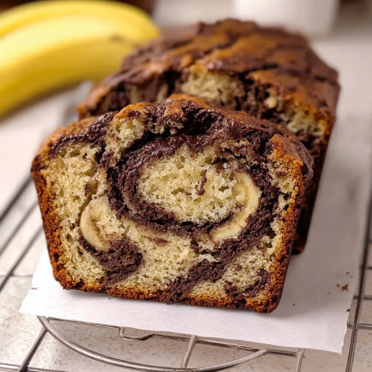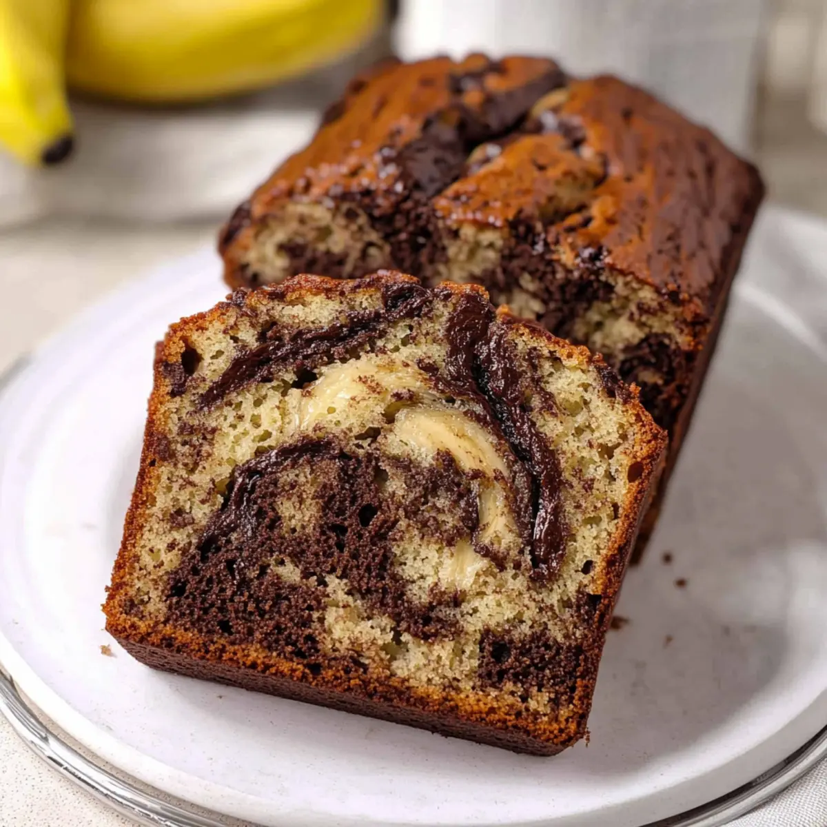 Indulging in warm, moist slices of chocolate marbled banana bread invites a delightful experience, perfect for breakfast or a sweet afternoon treat.