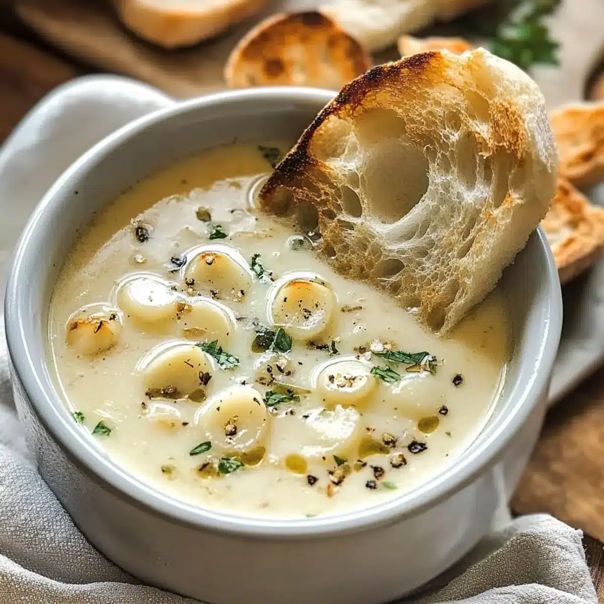 Crusty Bread: Essential for dipping, this hearty bread provides a satisfying crunch against the velvety soup. It’s the ultimate comfort duo that warms your heart with each bite.