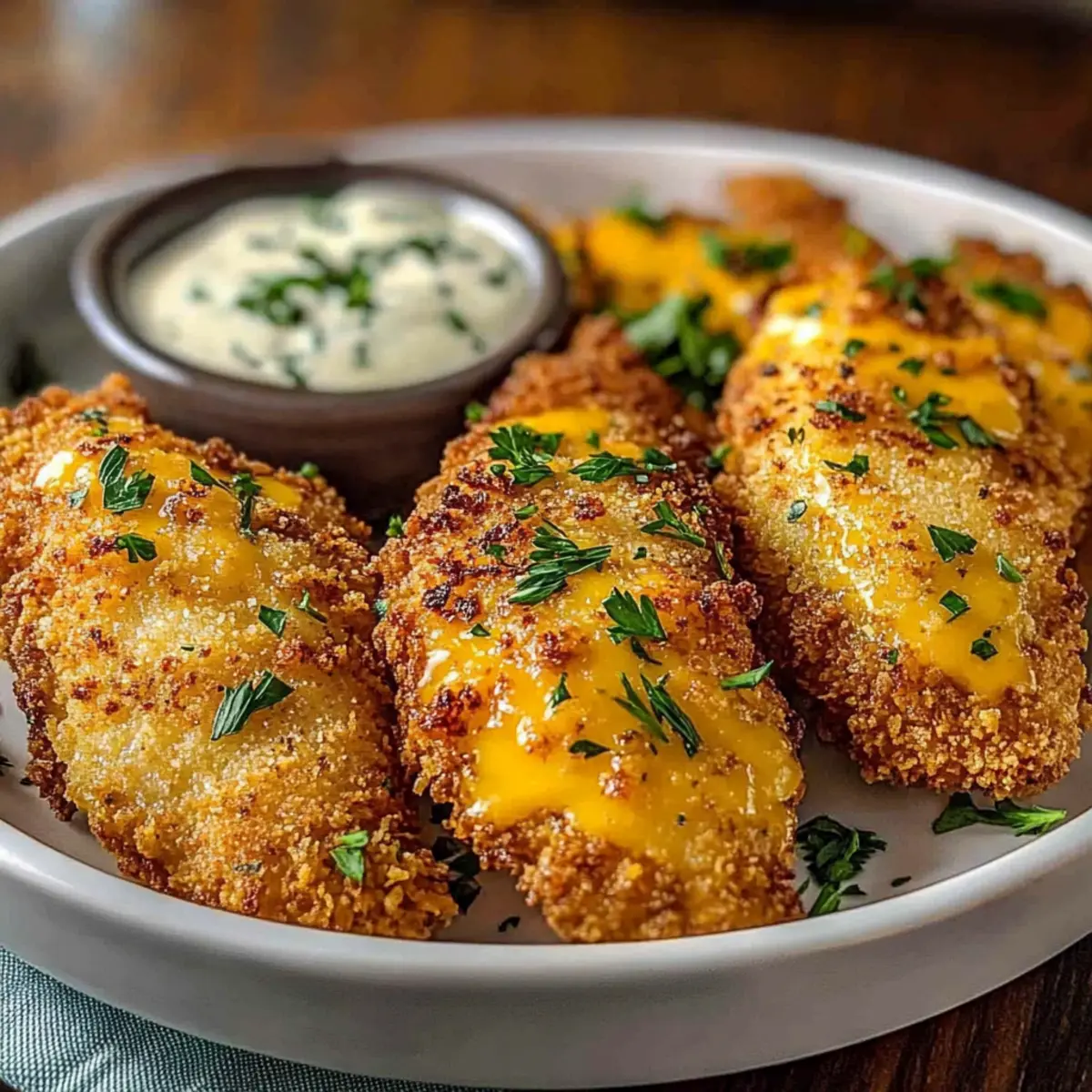 - Coat Chicken: Dip each tender into the ranch-cheese mixture, ensuring they are fully coated.
