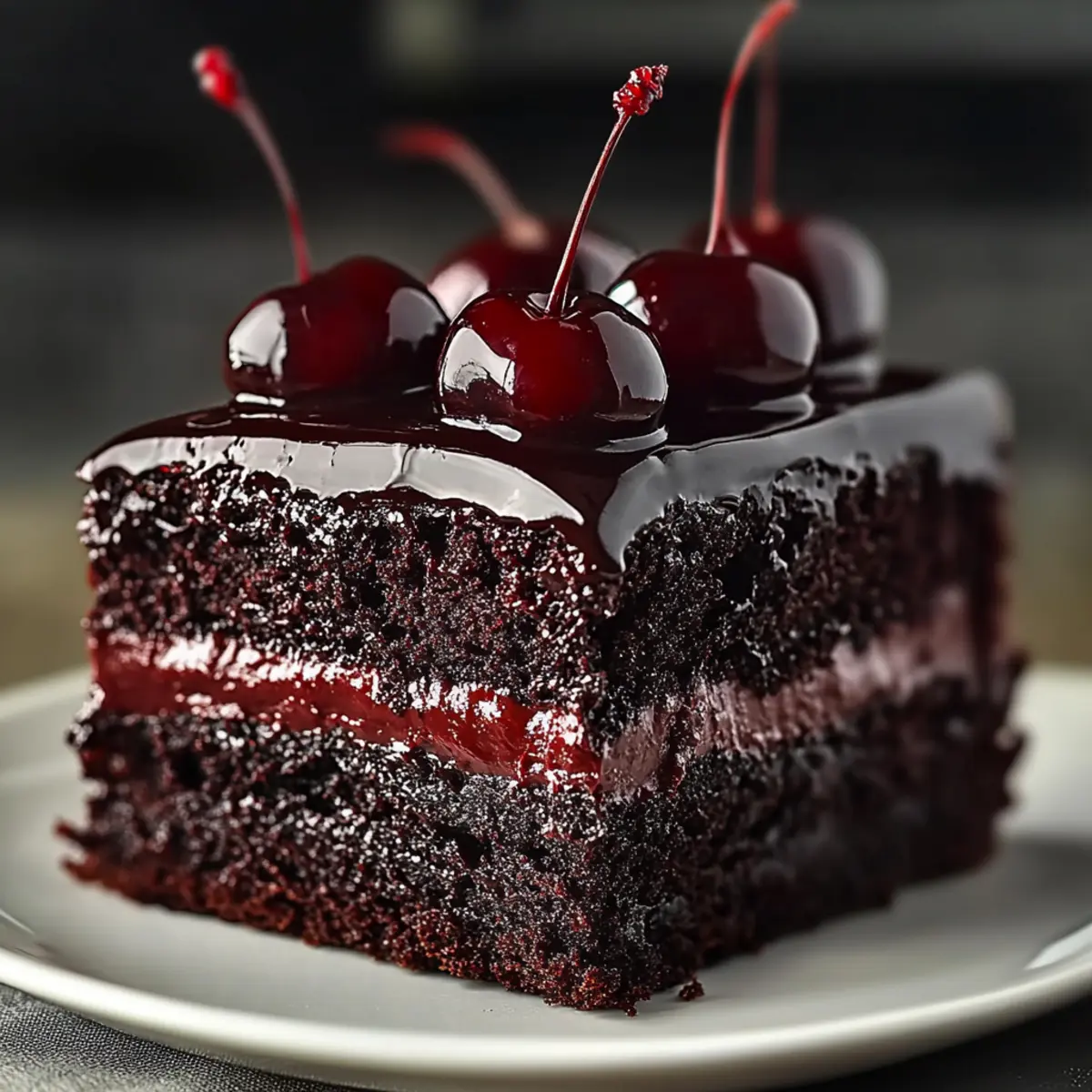 These decadent Dark Forest Chocolate Cake components are perfect for meal prep, saving you time during the busy week! You can bake the cake layers up to 24 hours in advance; simply wrap them tightly in plastic wrap and store them in the refrigerator to maintain moisture and prevent drying out. The cherry compote can also be prepared up to 3 days ahead—just refrigerate it in an airtight container after cooling. For the ganache, store it at room temperature for up to 2 days; if it thickens, gently reheat it before use. When you’re ready to serve, simply assemble the layers with cherry compote, glaze with ganache, and garnish. Enjoy restaurant-quality results with minimal effort!