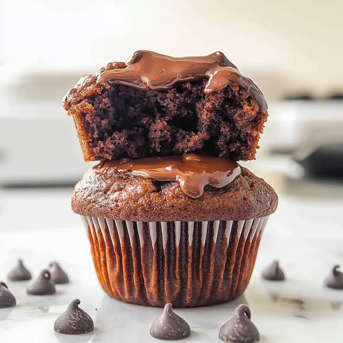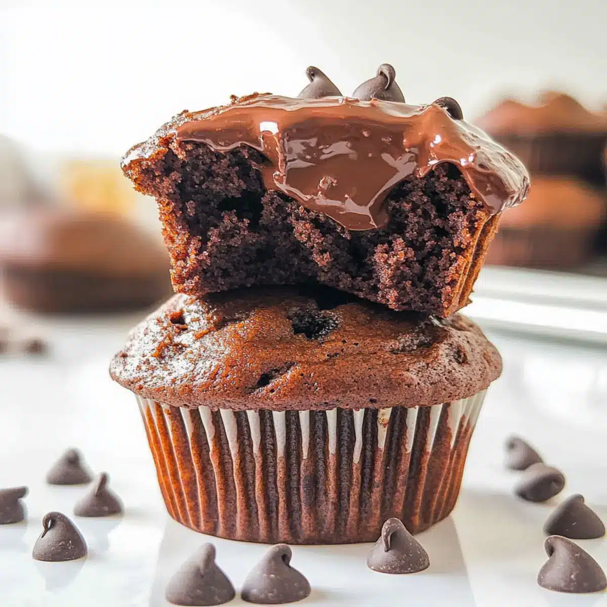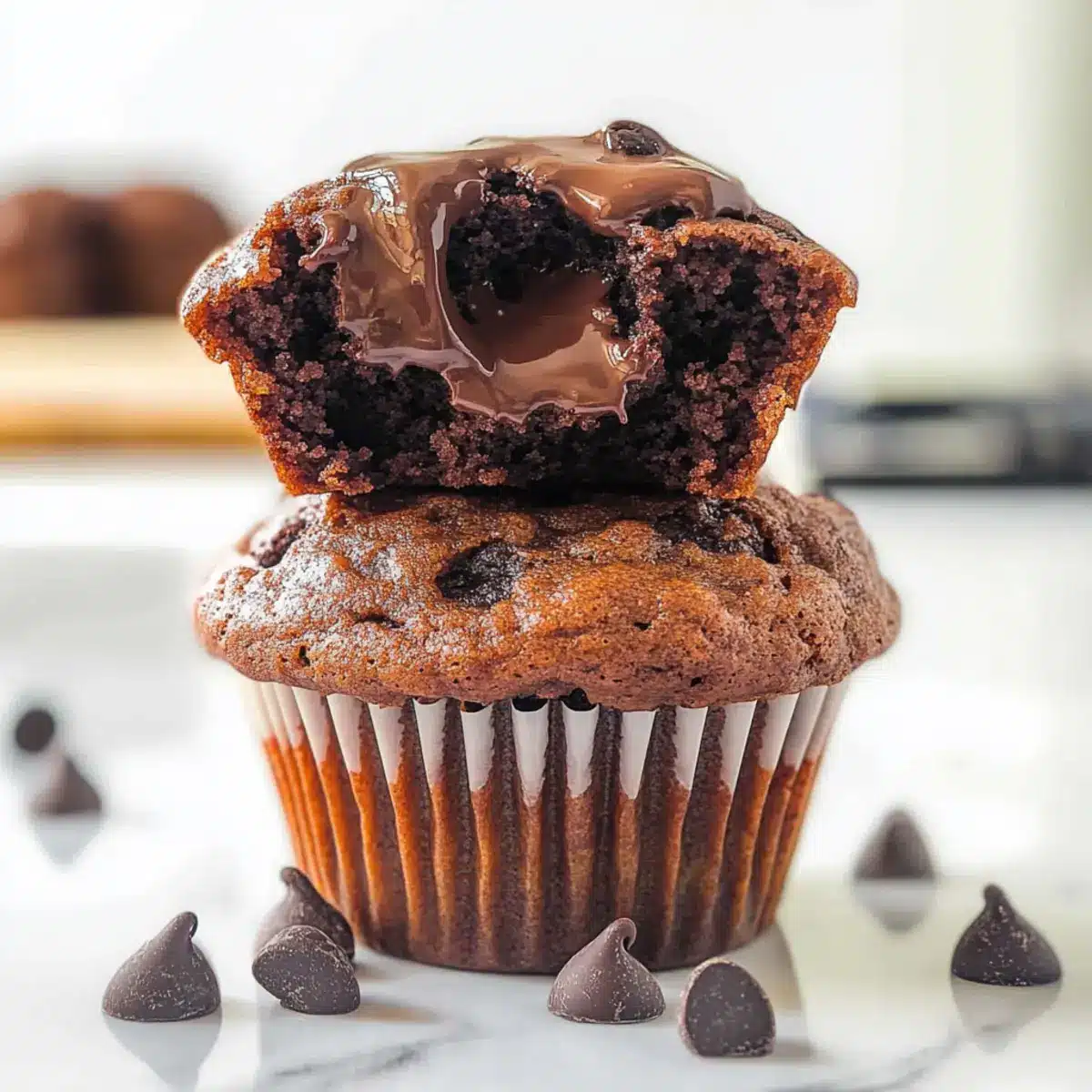 Decadent Double Chocolate Chip Cottage Cheese Muffins Surprise