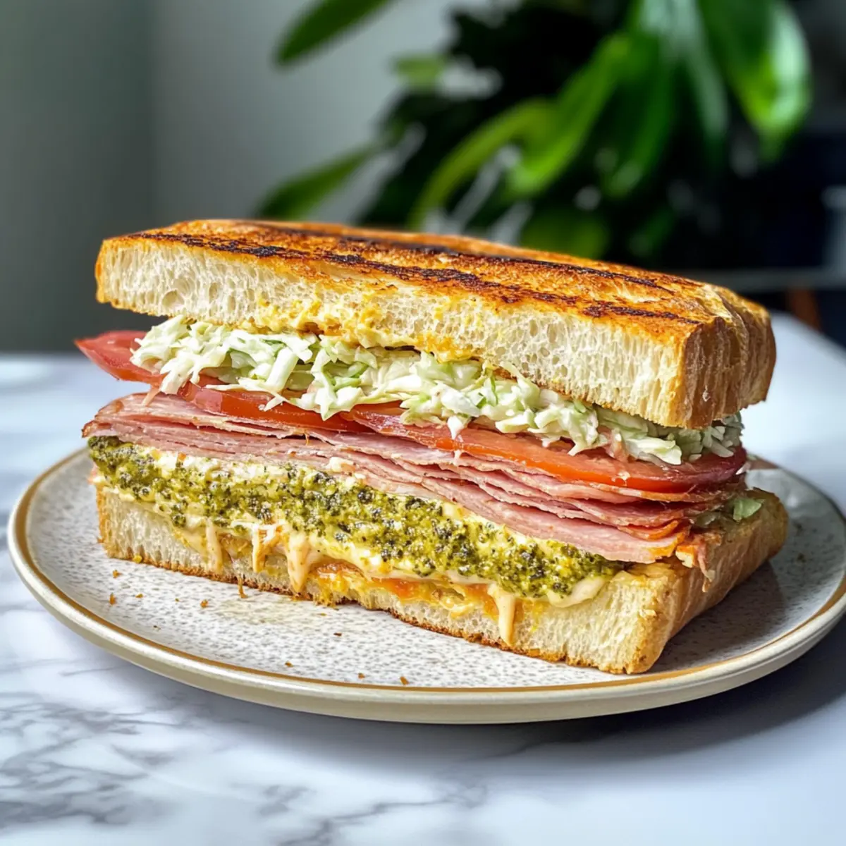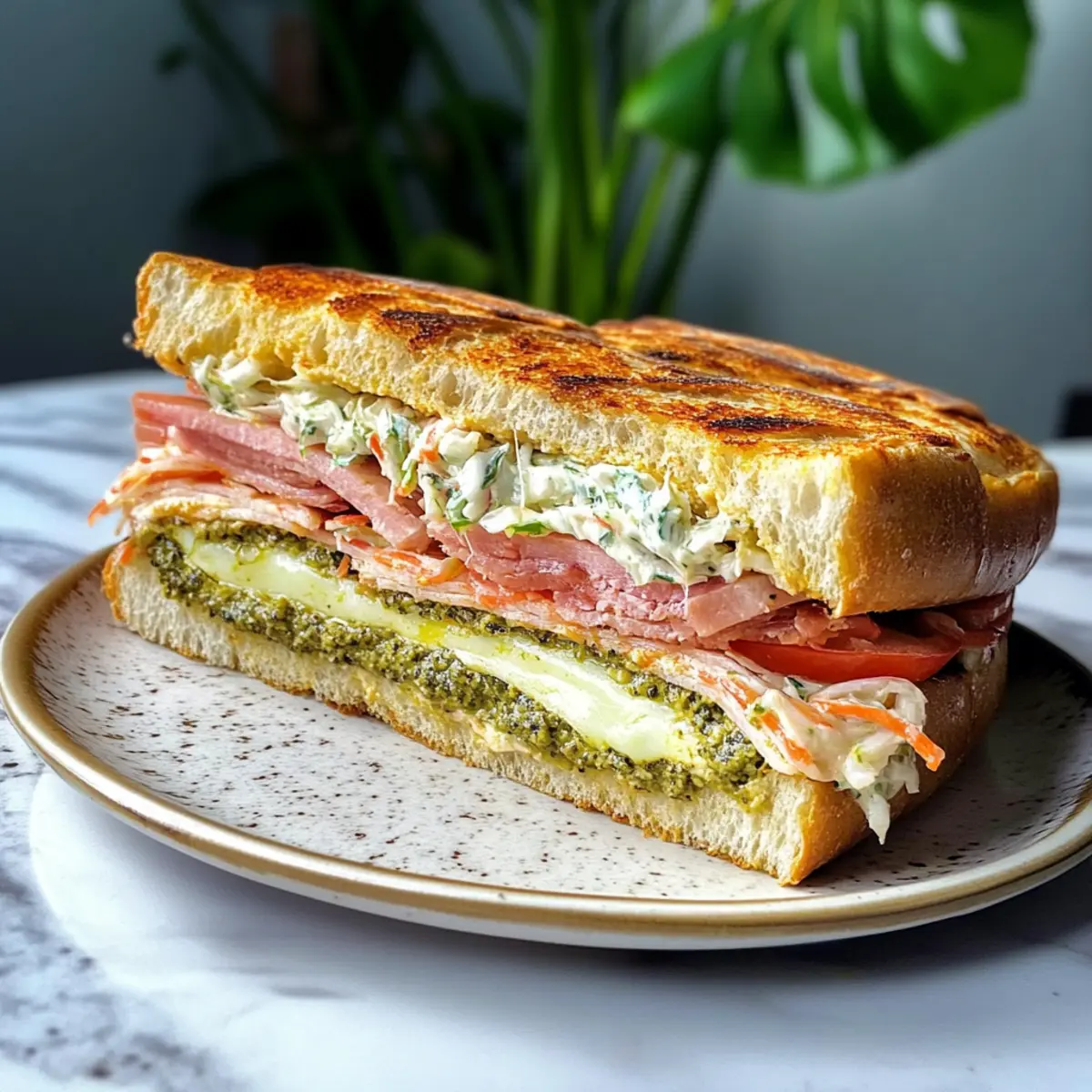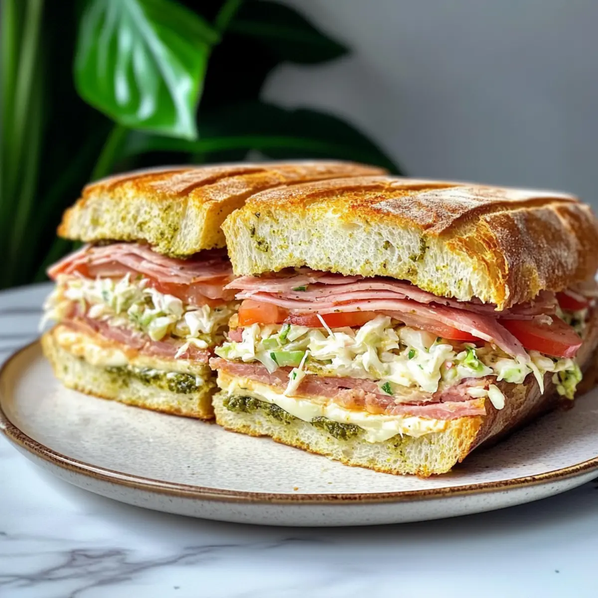As I walked through the bustling market, the scent of freshly baked bread wafted through the air, instantly sparking my craving for something deliciously satisfying. That’s when the idea for the Ultimate Gourmet Ciabatta Sandwich hit me! This gem is a harmonious blend of savory deli meats, creamy Monterey Jack cheese, and a vibrant pesto butter spread, topped off with crunchy coleslaw. Whether you’re preparing lunch for yourself or impressing guests at dinner, this quick and easy recipe is a guaranteed crowd-pleaser. Plus, with simple substitutions, you can make this sandwich vegetarian-friendly without skimping on flavor. Ready to elevate your sandwich game? Let’s dive in!