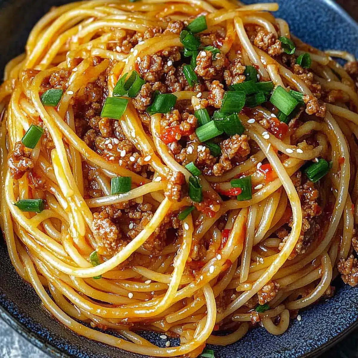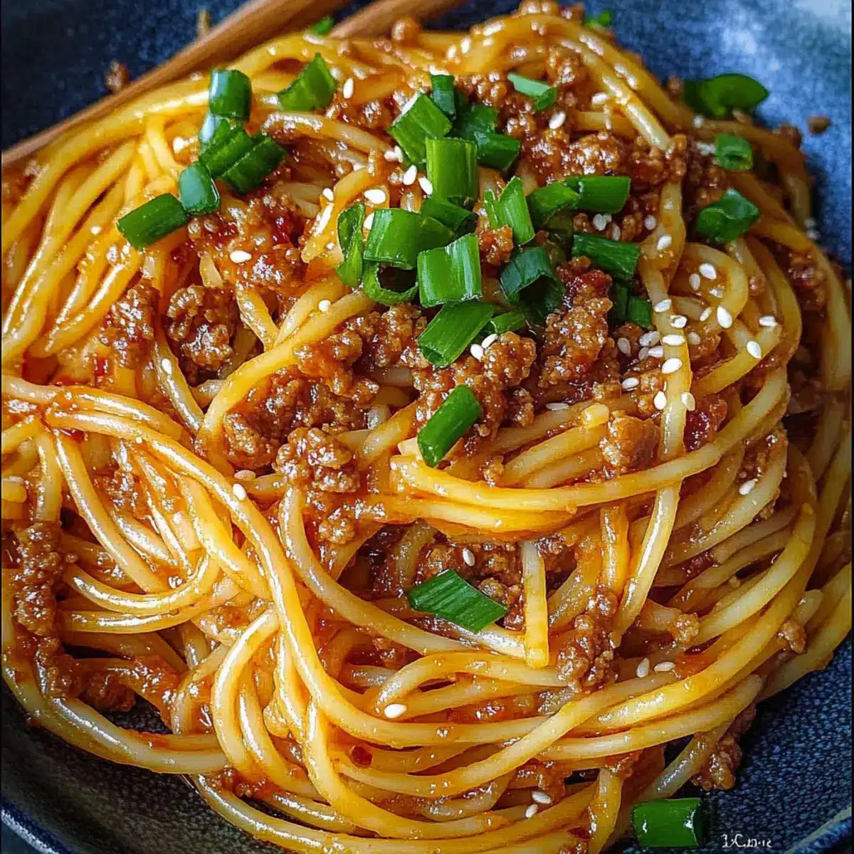 These Asian-Style Ground Beef Spaghetti are perfect for those busy weeknights when you want to save time without sacrificing flavor! You can prepare the sauce (ground beef, garlic, ginger, soy sauce, chili oil, brown sugar, and rice vinegar) up to 3 days in advance. Just store it in an airtight container in the fridge. When you’re ready to serve, simply reheat the sauce on the stove while cooking your spaghetti. Remember to cook the noodles fresh for best texture since they can become mushy if stored. Add drizzle of sesame oil and garnishes right before serving for the freshest taste. Enjoy restaurant-quality results in a fraction of the time!