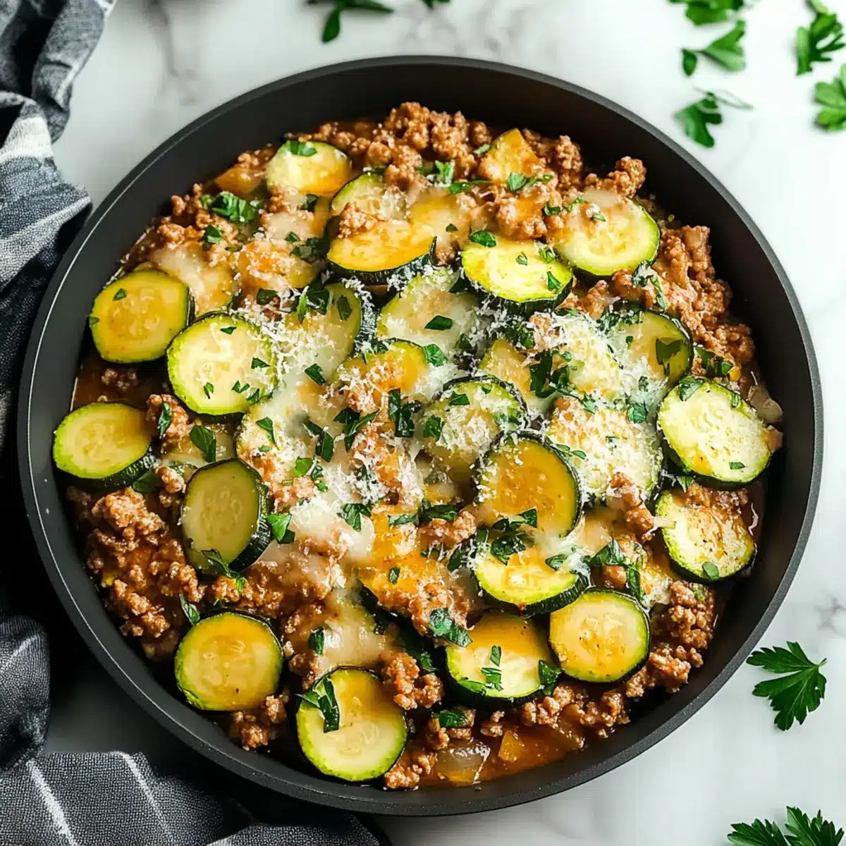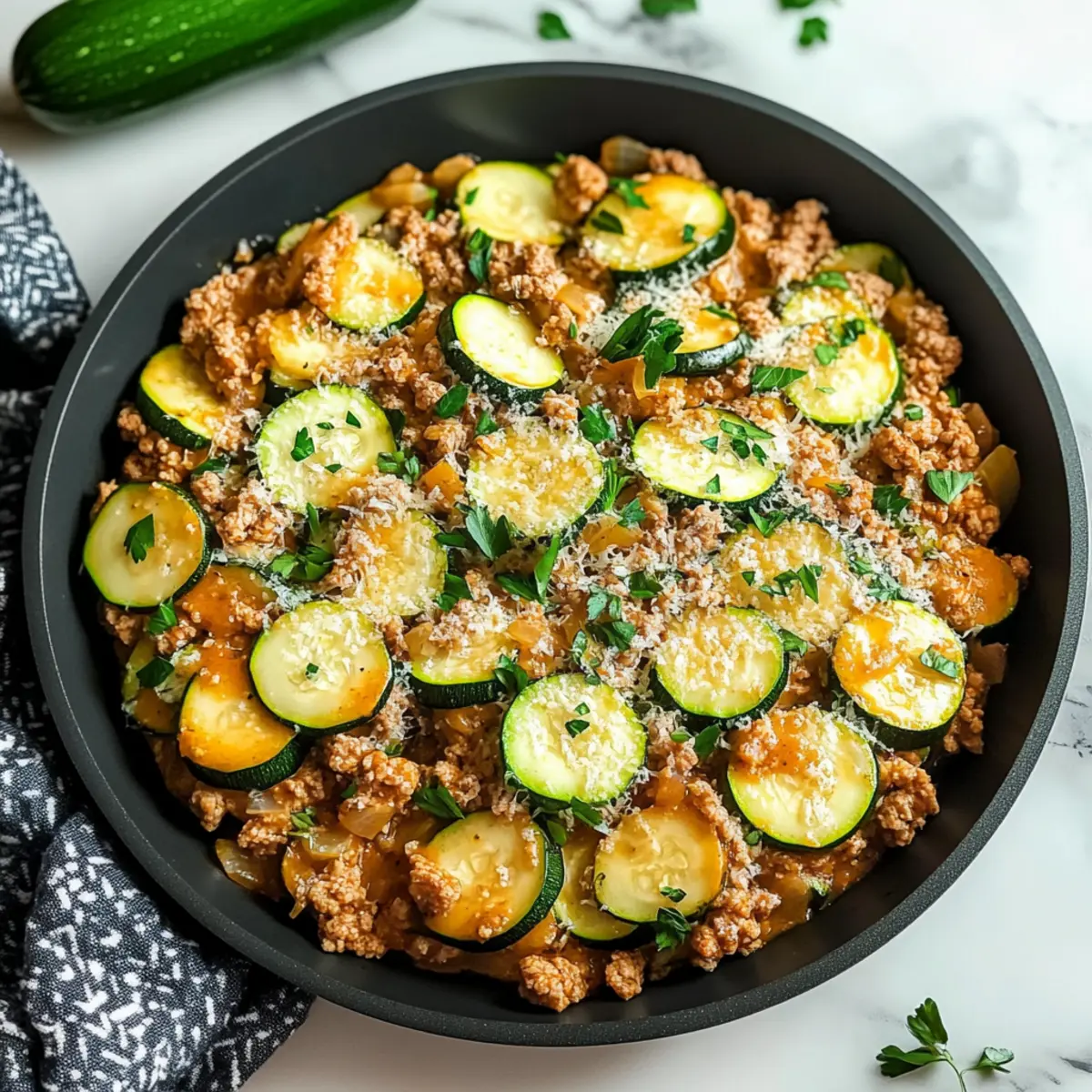 Prepare your Ground Turkey and Zucchini Skillet ahead of time for effortless weeknight dinners! You can chop the zucchini and onions up to 24 hours in advance, keeping them in the refrigerator to maintain their freshness. Additionally, cook the ground turkey mixture (steps 1-6) and refrigerate in an airtight container for up to 3 days. When you’re ready to serve, simply reheat the mixture in a skillet over medium heat, adding zucchini and garlic in the last few minutes of cooking for optimal flavor and texture. This way, you’ll enjoy a wholesome, comforting meal that tastes just as delicious as fresh, saving you valuable time for your busy evenings!
