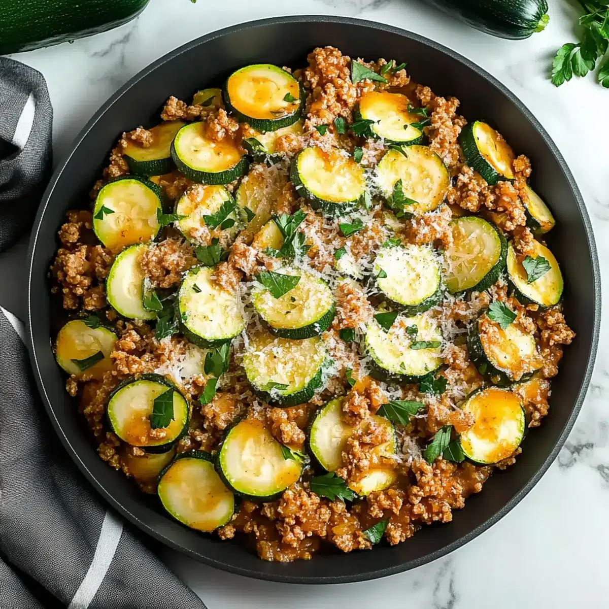 - Grated Parmesan Cheese – Melts beautifully into the mixture, adding a creamy, salty finish to your Ground Turkey and Zucchini Skillet.