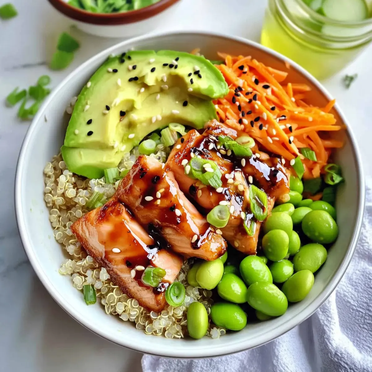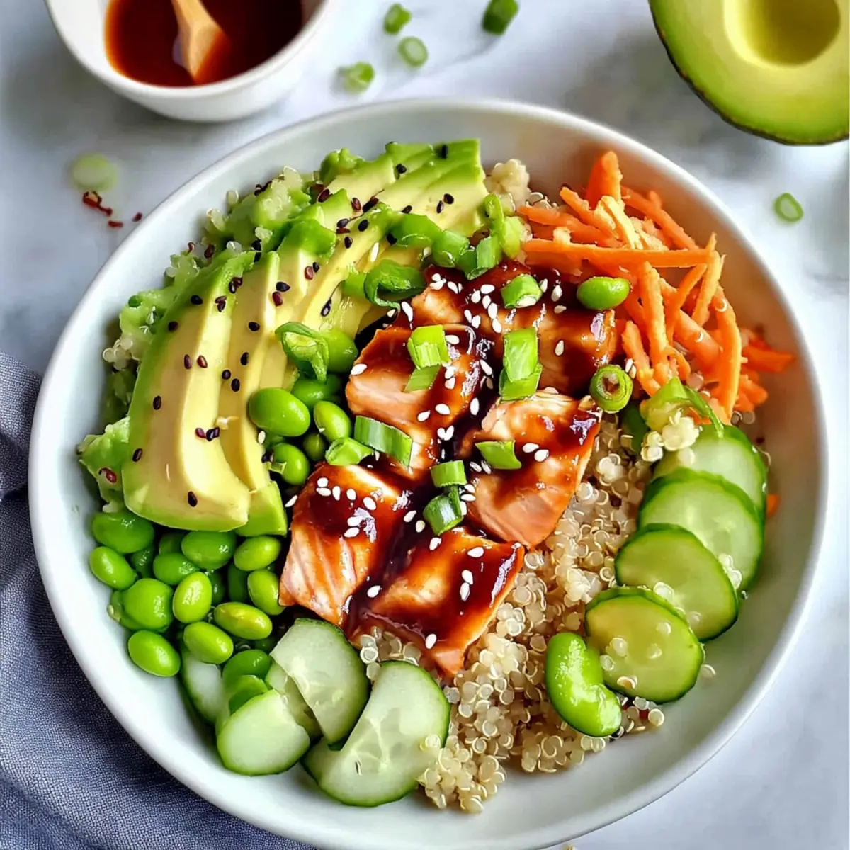Get ready to savor the mouthwatering flavors of the Honey Sriracha Salmon Bowl as you prepare this nutritious and scrumptious dish!