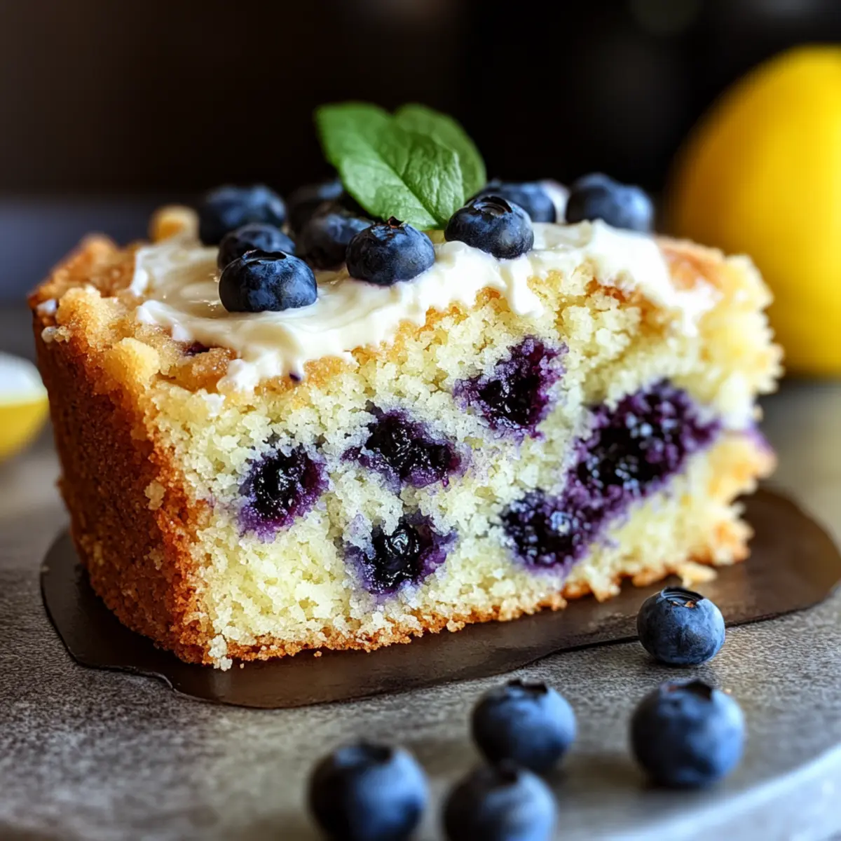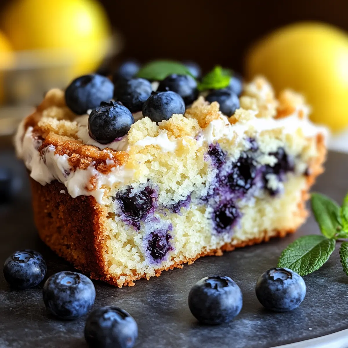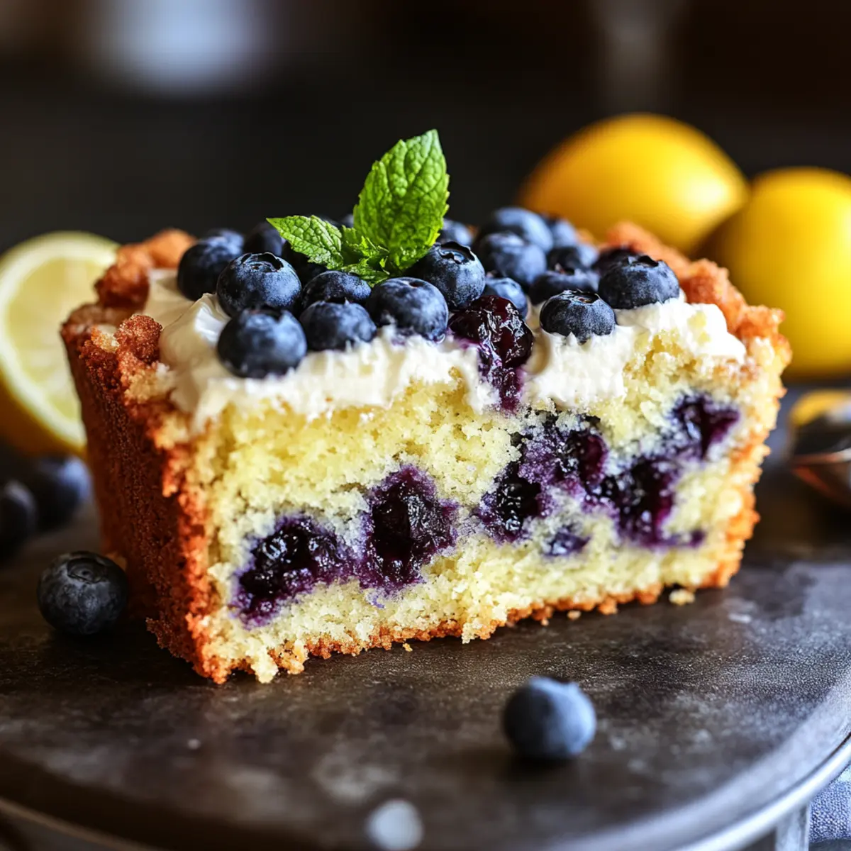 Whipped Cream: Light and airy, a dollop of freshly whipped cream on each slice creates an indulgent experience. This addition balances the tartness of the lemon and blueberries, making every bite heavenly.