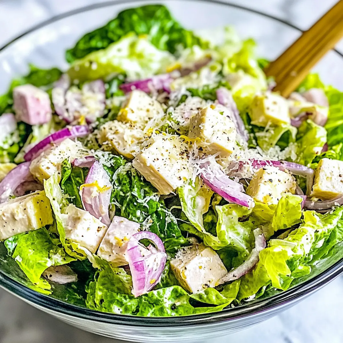 Chop one head of romaine lettuce into bite-sized pieces and place them in a large salad bowl, ensuring they are crisp and vibrant. Next, thinly slice about ¼ of a red onion and add it to the bowl. The combination of these ingredients will create a refreshing base for your Lemon Parmesan Lettuce Salad.