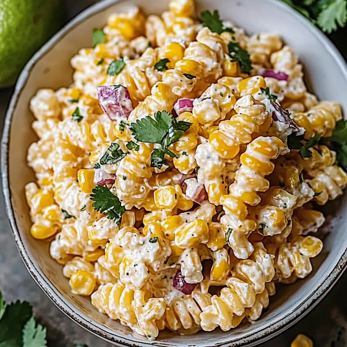 Vibrant Flavors: The combination of sweet corn, zesty lime, and creamy dressing captures summer in every bite.