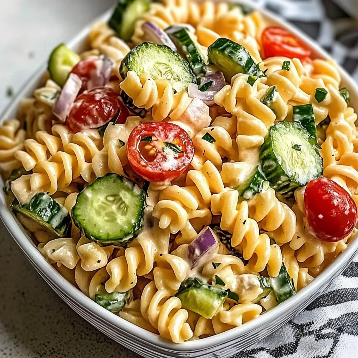 Perfectly Balanced: With a satisfying mix of textures—crunchy cucumbers, juicy tomatoes, and tender pasta—this salad is a delightful treat that everyone will love!