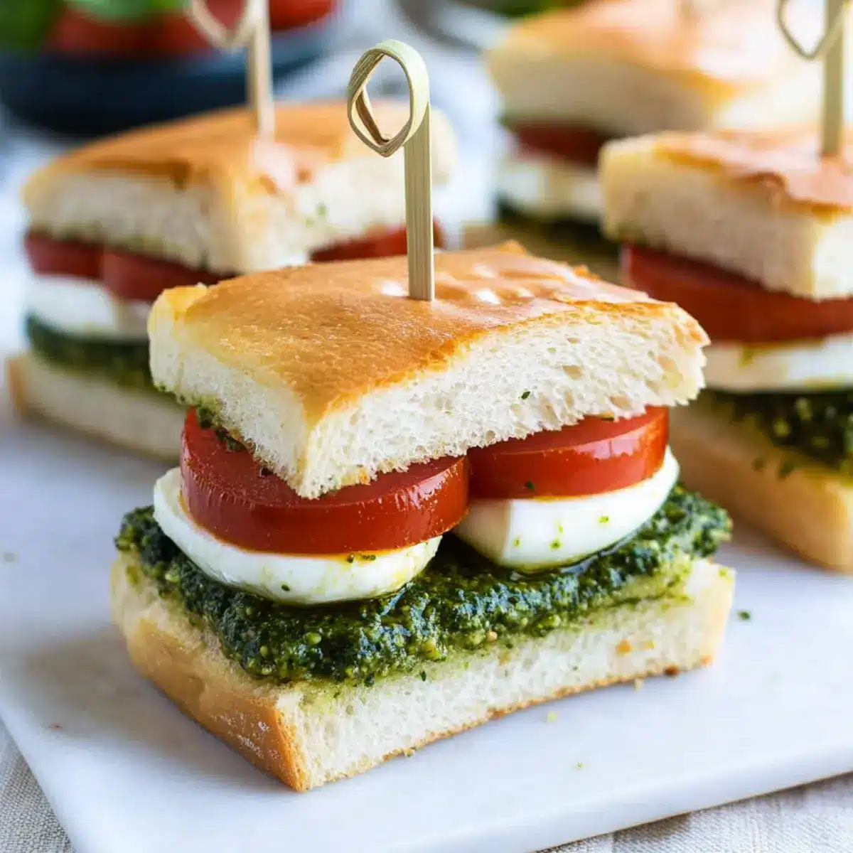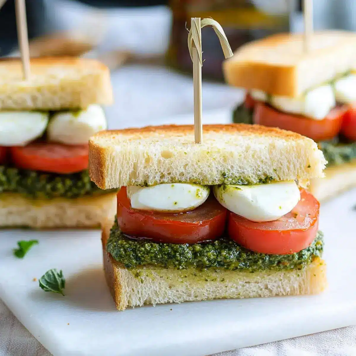 For a warm version, consider lightly grilling or toasting your assembled sandwich on a skillet over medium heat for 3-4 minutes on each side, until golden brown and the cheese is slightly melted. If serving cold, simply cut the sandwiches into quarters for easy handling and secure with toothpicks. Your Pesto Caprese Sandwich is now ready to be enjoyed in all its deliciousness!