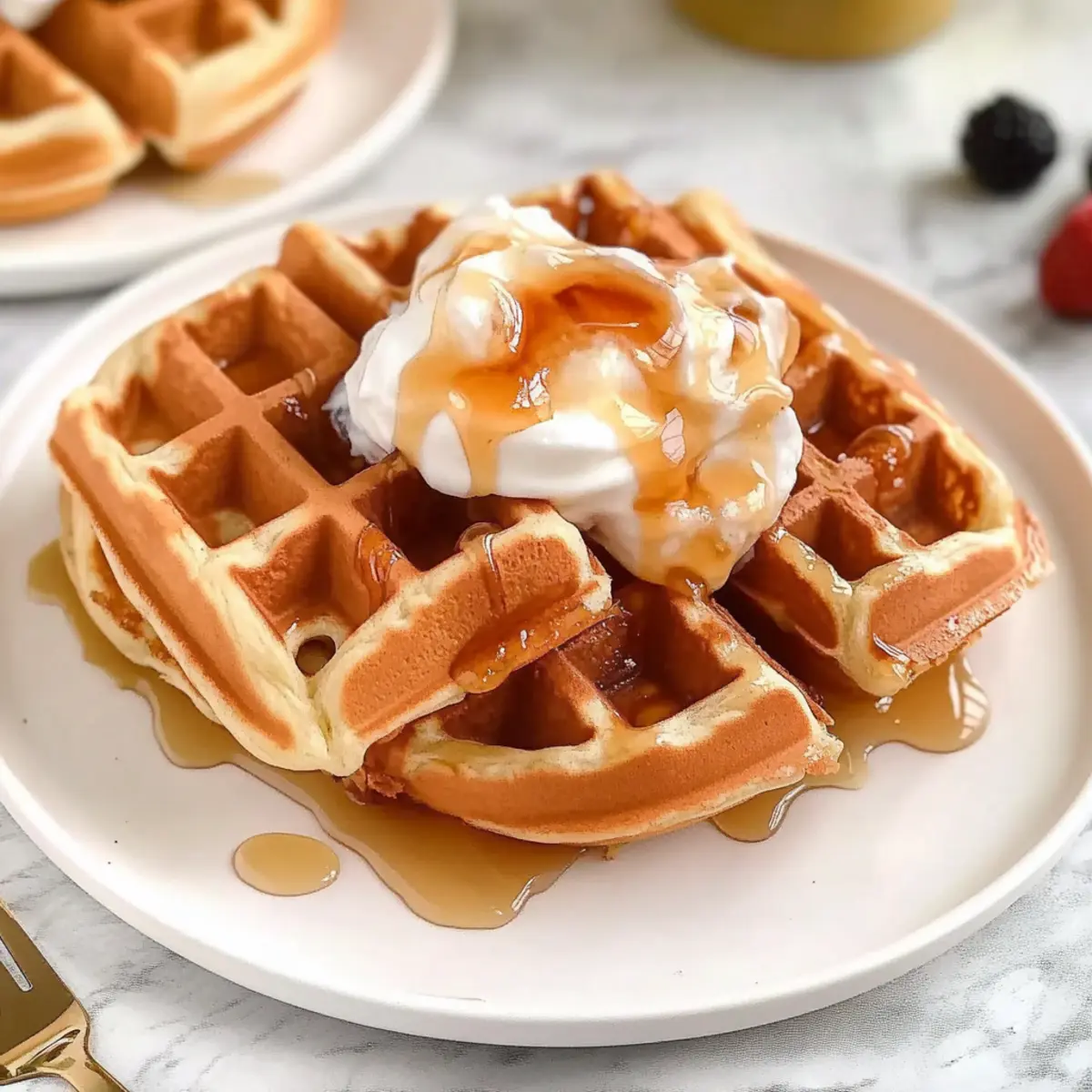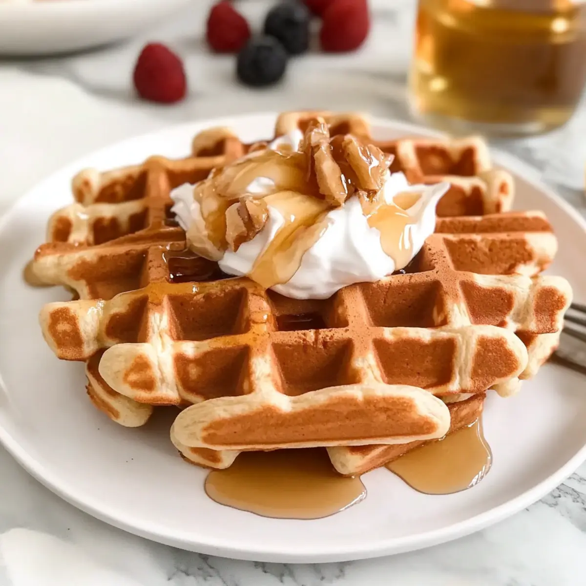 Maple Syrup or Honey: A light drizzle of maple syrup or honey brings a natural sweetness, creating a delightful contrast that emphasizes the waffles’ fluffy interior.