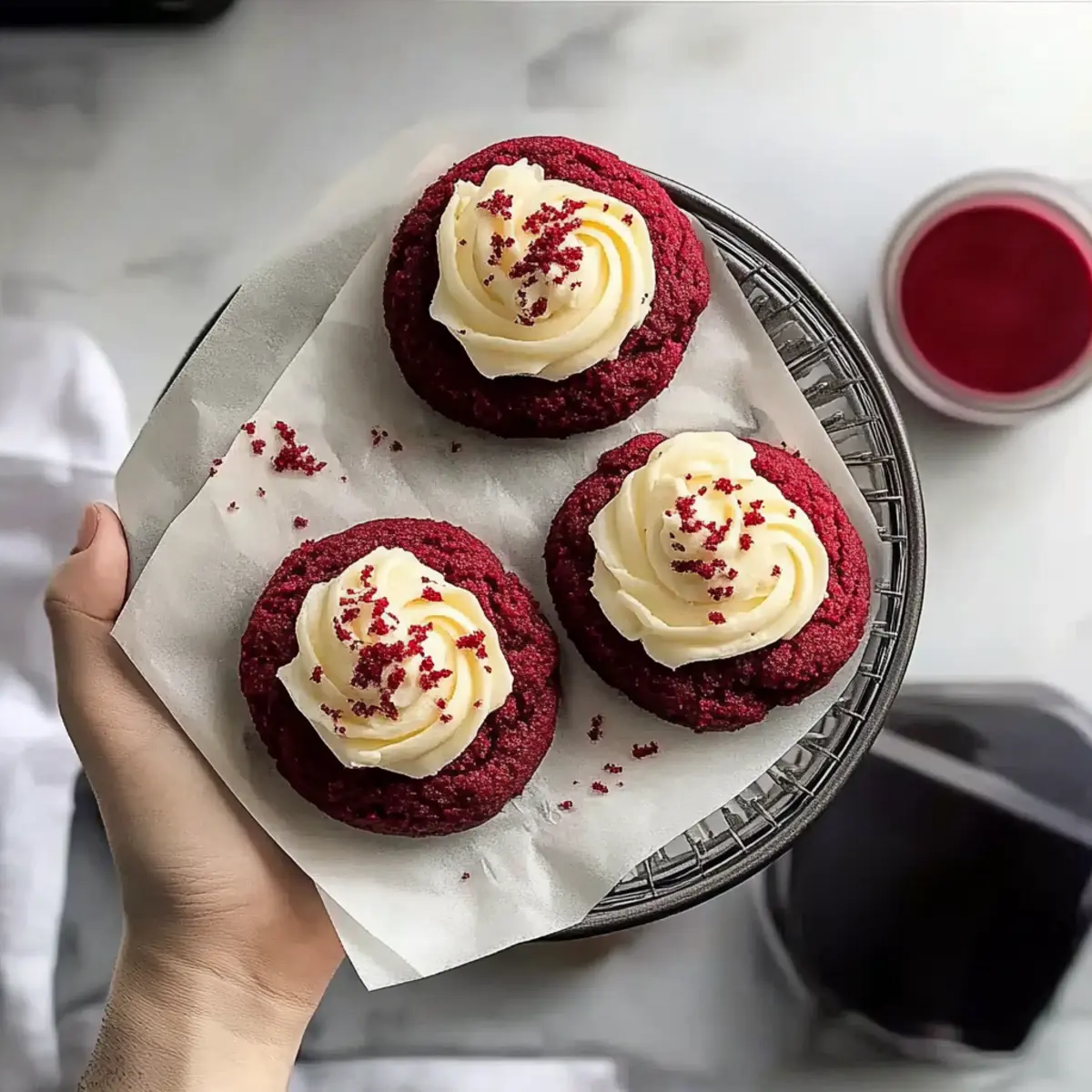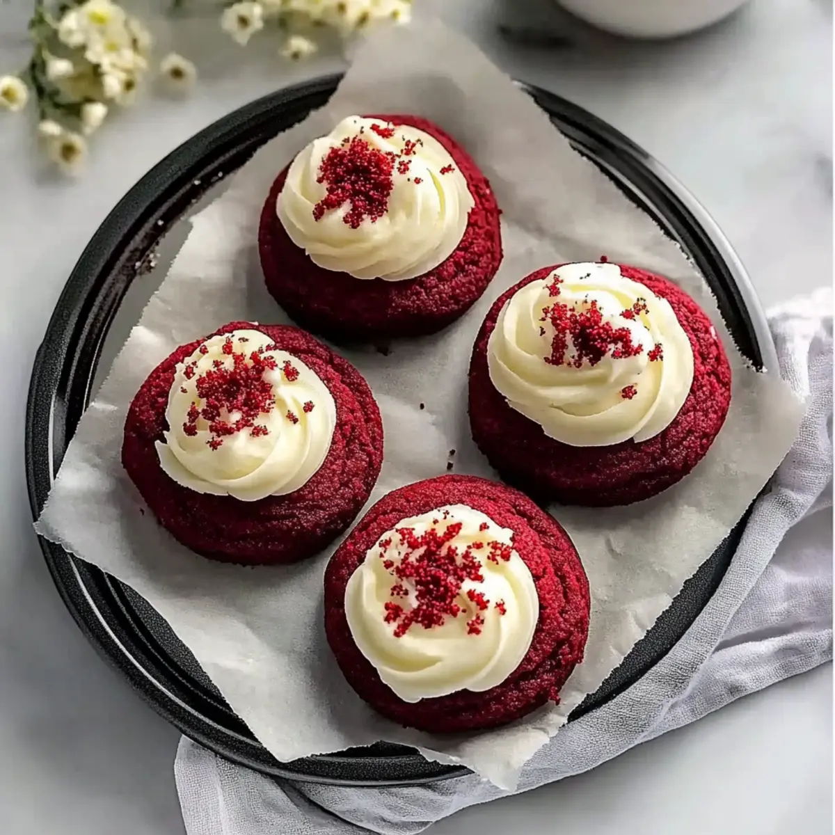 Delicious Red Velvet Cookies with Creamy Frosting Delight
