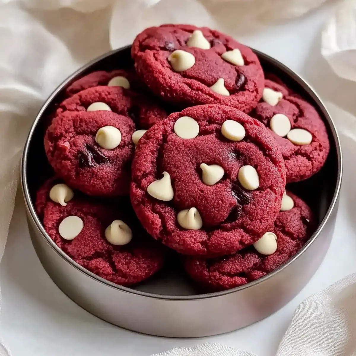Soft and Chewy: With a signature melt-in-your-mouth texture, these cookies transport you straight to dessert paradise. Visually Stunning: Their deep red hue makes them a showstopper for any gathering or cozy night. Easy to Make: Perfect for bakers of all skill levels, this recipe requires only simple steps for delicious results. Versatile Flavor: Try swapping chocolate chips for white chocolate or adding nuts for an exciting twist. Great for Sharing: Ideal for cookie platters, they are bound to impress your guests and loved ones—all while giving a nod to classic red velvet flavor. Don’t forget to pair them with a glass of milk or alongside your favorite coffee for the ultimate treat!